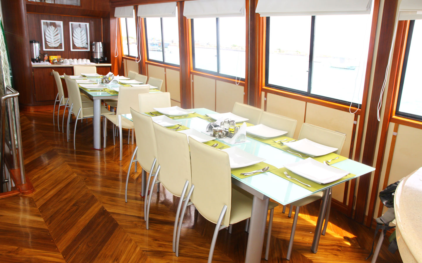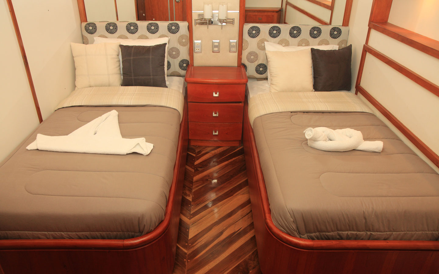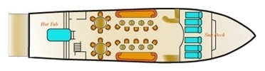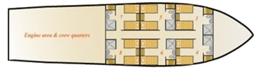 - Cabins: 7 crew members plus a naturalist diving instructor and a diving instructor assistant
