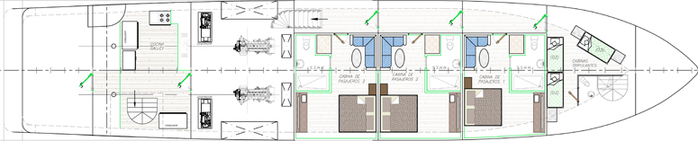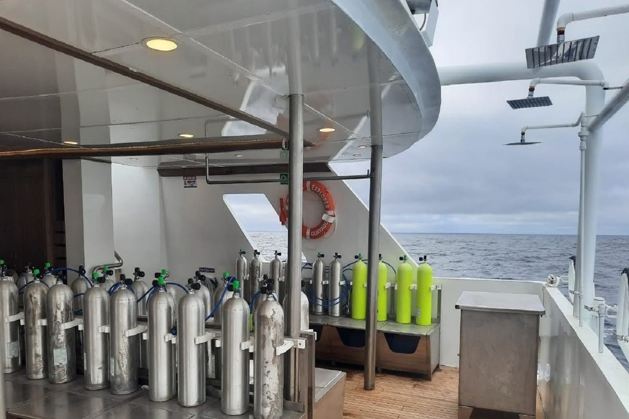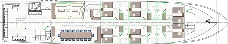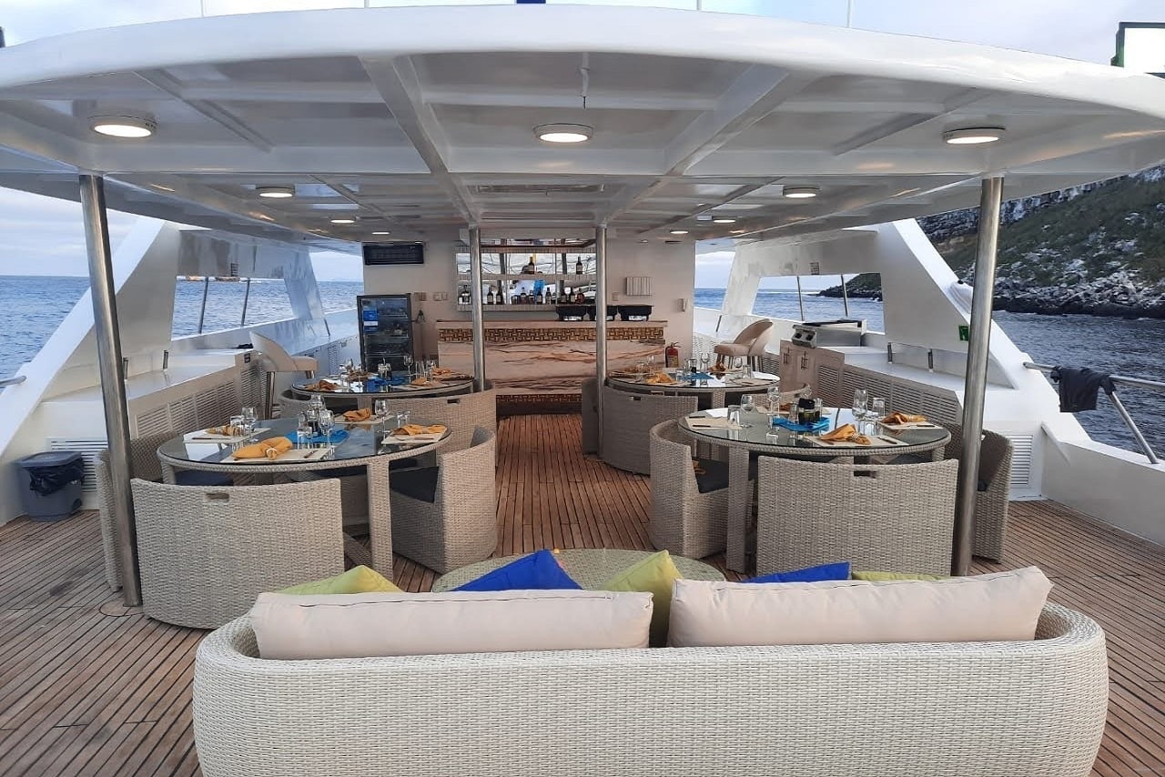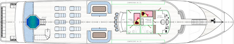 The NEW, elegant & spacious 16-passenger M/V Tiburon Explorer Galapagos diving liveaboard provides 9 air-conditioned staterooms located on the main and lower decks; all of which have private bathrooms and ocean views. All nine cabins have twin beds and the cabins can be converted to queen beds for couples. The yacht features partially covered sun deck with a jacuzzi and ample seating, salon area with dining, bar and entertainment area.